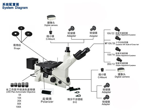 粗微動同軸調焦,微調格值:0.002mm 粗動鬆緊調節,移動範圍向上2mm,向下7mm |